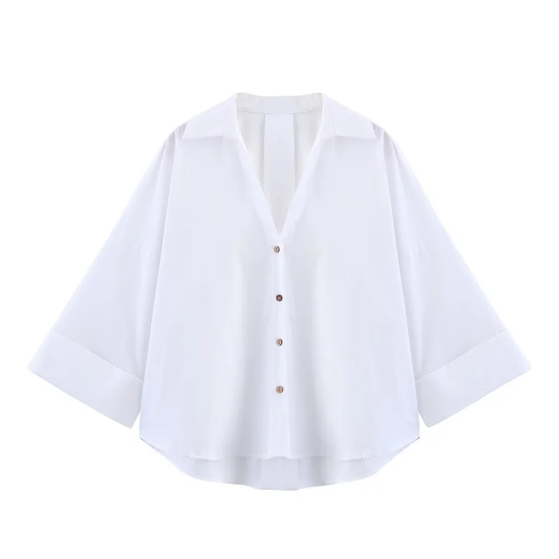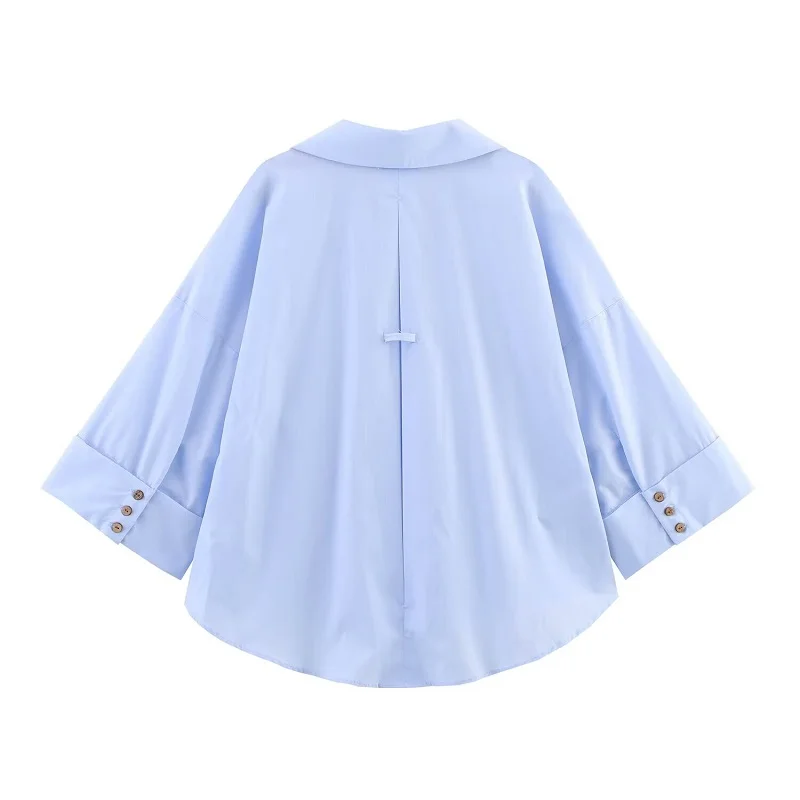 MUJER 2025 Oversized Shirt Women Striped Casual Shirts and Blouses Woman Wide Sleeve Tops Woman White Blue Summer Shirts Women