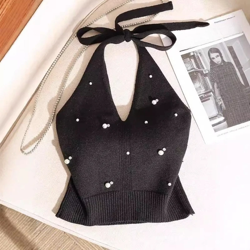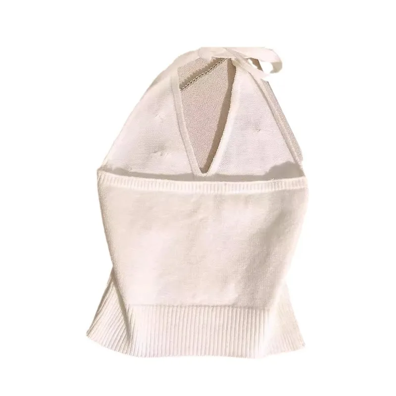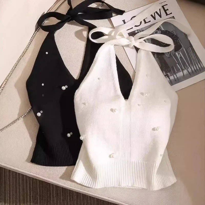 Knitted Vest Fashion Korean Sexy Tanks Bandage Backless Tees Beading Sleeveless Camis Summer Sweet Crop Tops 2025 Ropa Mujer