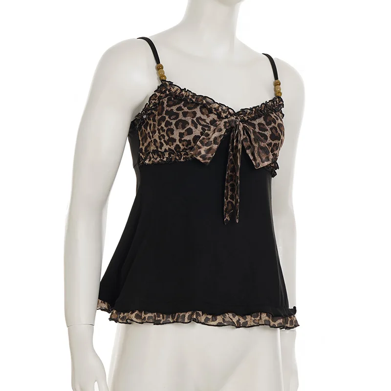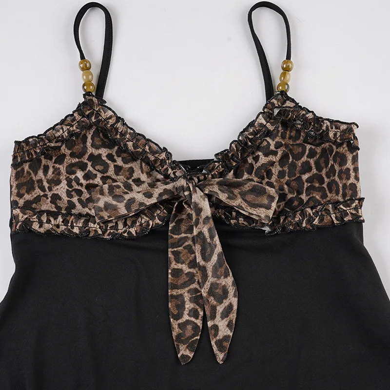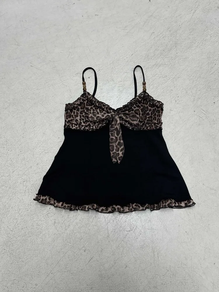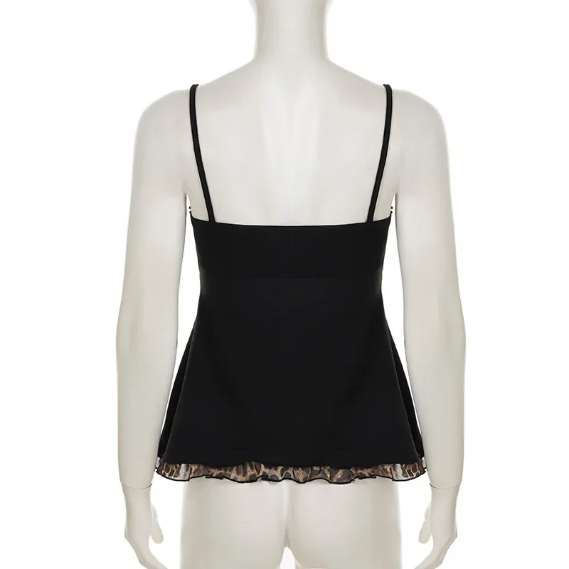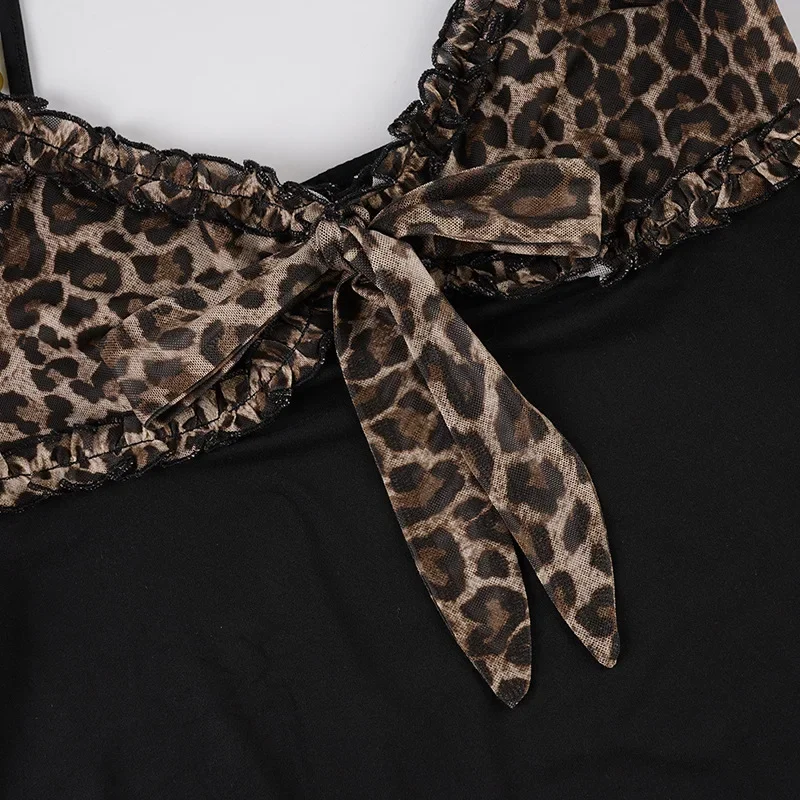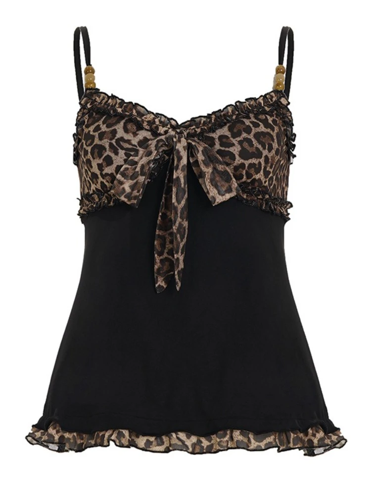 American Hotsweet Y2k Leopard Camisole Women Retro Streetwear E-girl 90s Dark Gothic Sexy Patchwork Lace-up Crop Tank Top Femme