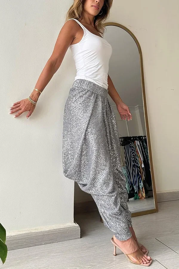 Women's S-XL Size Spring Summer New Party Loose Sequin Pants INS Casual Elastic Waist Casual Fashion Slimming Versatile New